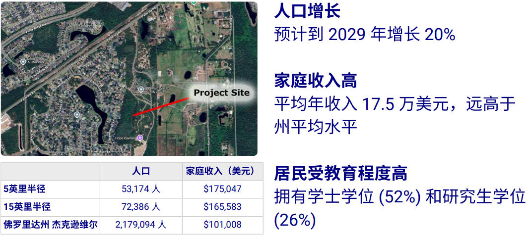 黄金地段: 佛罗里达州是美国人口第三大州(人口超过 2300 万;年增长率为 2%,位列美国第一) ,是美国第四大经济体,无个人所得税。