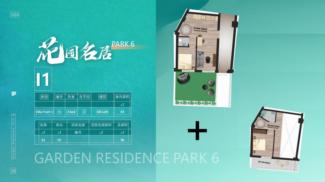【户型】共两种房型,复式和公寓,共 46 套