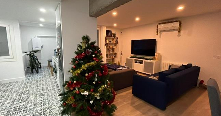 这套公寓于 2023 年完成翻新,采用了最新的装修材料和高端饰面,整体设计时尚、优雅,每个细节都经过精心打磨。公寓格局方正,每个房间都设有朝外的窗户,采光充足。此外,公寓配备了独立空调和暖气,生活舒适便利。 进入公寓后,首先映入眼帘的是宽敞的客厅和半开放式厨房。厨房内嵌入式家电齐全,并连接一个独立的洗衣房和两个小型储物间。客厅采光良好,布局合理,适合休闲和接待客人。 沿着走廊,您将进入第一间卧室,这是一间可以轻松容纳双人大床的房间,配备嵌入式衣柜、独立空调以及良好的隔音和采光。走廊另一侧是一个完整的卫浴,设计简洁实用。再往里走是一间带嵌入式衣柜的双人卧室,适合家人或客人使用。走廊尽头是主卧,设有套内浴室和嵌入式衣柜,私密性与舒适性兼备。