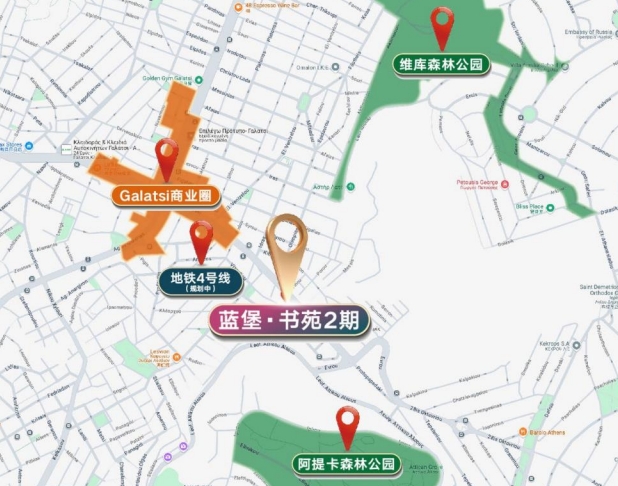 蓝堡·书苑2期位于雅典北部GALATSI区域,是雅典卫城中心与北部CBD的过渡地带。公共交通便利,靠近基菲夏大道,方便驾车出行,快速触达雅典市中心和南部沿海。GALATSI绿树成荫,区内有多样化的餐厅、咖啡馆、露天剧场,常举办音乐会和文化活动,以其便捷的地理位置和社区氛围而受到当地居民和移民家庭的青睐。